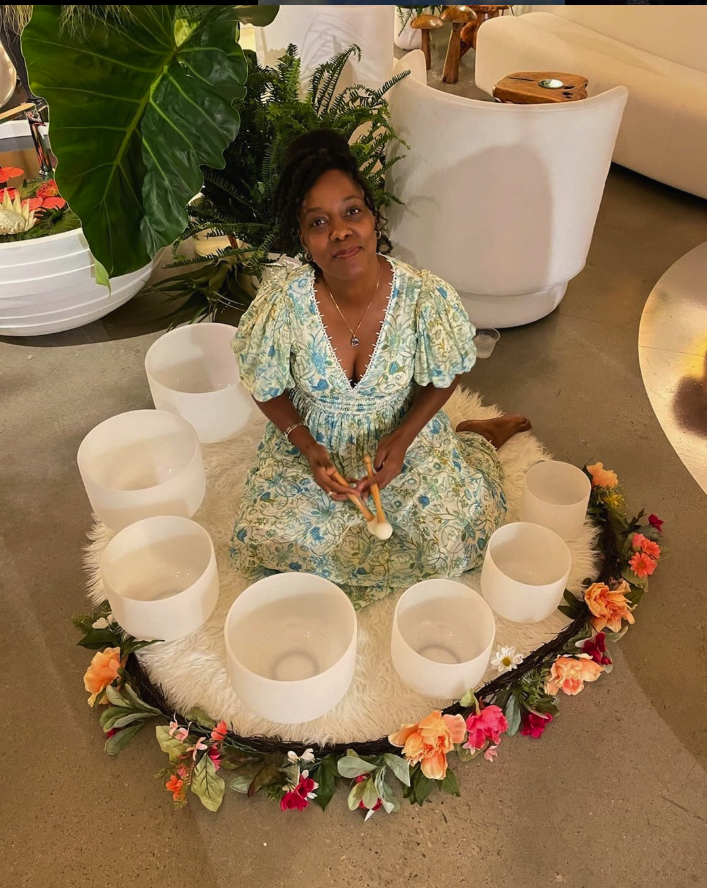 She curates immersive experiences using crystal singing bowls and pure toned instruments, chants, guided meditations, shamanic journeying, Akashic Readings and sacred movement to release blockages of negative emotions/trauma to manifest balance in your being and reactivate your light.